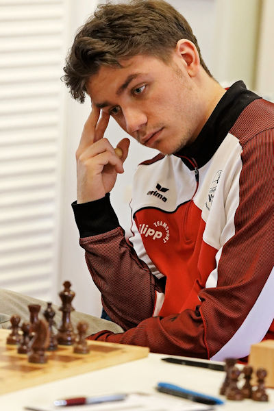 Inzwischen konnte Ole den Vormarsch der gegnerischen Mehrbauern stoppen. Die Stellung verblieb unklar, und insofern ging die Punkteteilung hier in Ordnung. Den nächsten Sieg erzielte Jan Dette. Gegen das Jobava-System kam er früh zum Ausgleich und erreichte mit Schwarz eine bequeme Stellung. Sein Gegner reagierte zu spät auf seinen Plan, und so entstand die kuriose Diagrammstellung, in der die weißen Figuren die schwarzen Bauern unmöglich von der Umwandlung abhalten können, 3:1.