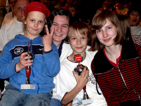 Zum Nervenkrieg geriet die Entscheidung bei den U10-Mädchen. Julia Walker (Oberhausen) sah nach vier Runden wie die sichere Siegerin aus, verlor aber ihre letzten drei Partien. Anna dagegen holte 1,5 Punkte, und da in der Schlussrunde auch alle übrigen Konkurrentinnen höchstens Remis spielten, genügte dies zum ersten Platz, der die erneute Teilnahme an der Deutschen Jugendmeisterschaft garantiert.