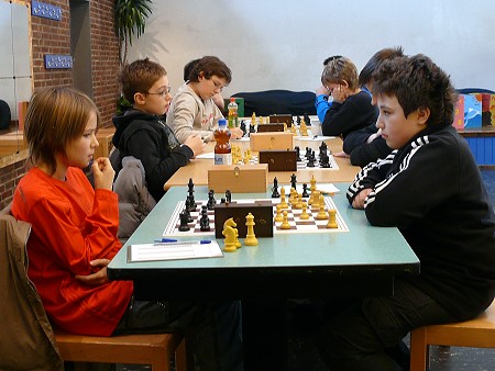 Fast schon erwartungsgemäß dominierten unsere Youngsters an den unteren Brettern klar: Anna gewann schon in der Eröffnung eine Figur und ließ ihrem Gegner danach keine Chance, Tims Gegner rochierte zum falschen Flügel und wurde schnell Matt, und Max gewann ebenfalls noch vor dem Mittelspiel eine Qualität.