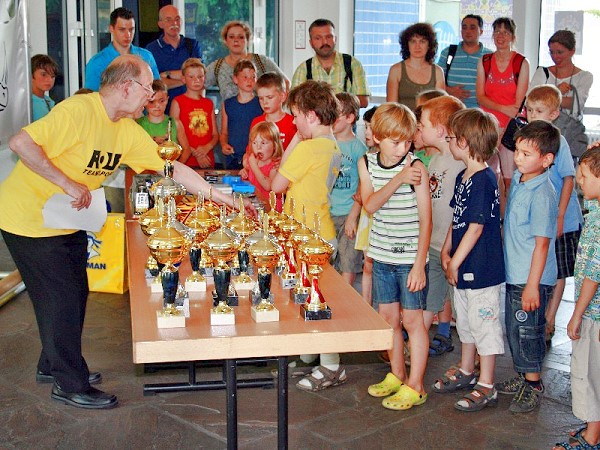Mit einer zahlenmäßig starken Delegation trat SFK beim Erkrather Jugendopen 2010 an. Doch bei tropischen Temperaturen schmolzen manche Ambitionen unserer Starter dahin, selbst Dr. Volker Gassmann und Bernd Rosen konnten im Betreuerturnier ihrer Favoritenstellung nicht gerecht werden. Allein auf Jens Kotainy war einmal mehr Verlass: Obwohl der U16-Spieler in der höheren U18-Klasse antrat, gewann er alle neun Partien und belegte mit 3 Punkten Vorsprung den 1. Platz.
