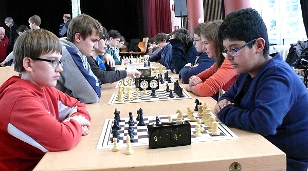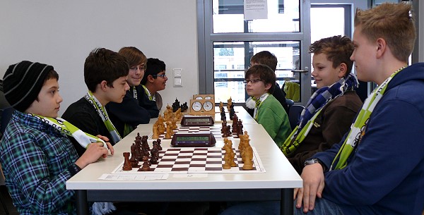 Insgesamt starteten nur drei Schulen in diesem Wettbewerb. Unter anderem fehlte mit dem Burggymnasium der vermutlich schärfste Rivale, der gleich mit fünf bis sechs SFK-Spielern hätte auflaufen können . Allerdings hatte auch das Maria-Wächtler-Gymnasium eine starke Truppe aufgeboten, in der mit Henrik Kennemann, Julian Knorr und Alexander Hollweg ebenfalls drei Katernberger das Herzstück bildeten. Diese besiegten das Theodor-Heuss-Gymnasium aus Essen-Kettwig in der ersten Runde denn auch klar mit 3,5:0,5.