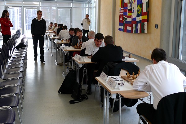 Zuerst gelang es Ralf Stremmel gegen ein bedrohliches gegnerisches Bauernzentrum kombinatorisch zu Materialgewinn und zum vollen Punkt zu kommen. Auf kuriose Art gewann kurz darauf Werner Nautsch seinen schwerblütig angelegten Stonewall "im Anzug": Ein Remisangebot in komplexer Stellung lehnte er ab und sein Gegner reagierte prompt mit einem Figureneinsteller und sofortiger Aufgabe.