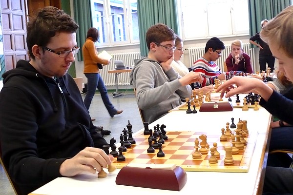 Seriensieger Leibniz wurde auch bei der Stadtmeisterschaft dieses Jahres seiner Favoritenstellung gerecht und profitierte dabei einmal mehr von der Spielstärke der Katernberger Jugend: Die lupenreine Vereinsauswahl, bestehend aus Tim Dette, Lukas Schimnatkowski, Anna Döpper und Cem Celik dominierte das Turnier mit 8:0 Mannschafts- und 16:0 Brettpunkten. Das Maria-Wächtler-Gymnasium (mit Henrik Kennemann, Julian Knorr und Alexander Hollweg) konnte zwar die übrigen Kämpfe klar gewinnen, unterlag aber im direkten Vergleich mit 0:4 und landete somit auf Rang 2 (6:2 Mannschaftspunkte).
