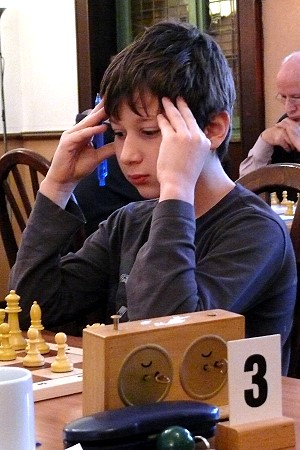 Immerhin 11 Kinder spielten mit, darunter zwei Mädchen und insgesamt 5 U8-SpielerInnen. Den Sieg machten Nikita Pauker und Tim Kovaz unter sich aus - beide sind über die Schach-AG des Leibniz-Gymnasiums zu uns gestoßen. Am Ende hatte Nikita die Nase vorn: Er gewann äußerst glücklich gegen Tim, die übrigen Partien recht souverän. Tim, der heute zum ersten Mal am Vereinstraining teilnahm, belegte mit 4 aus 5 den 2. Platz. Bronze ging an den U10-Spieler Justin Tennagels (3,5 Punkte). Auf dem starken 5. Platz landete mit Feride das beste Mädchen - sie gehört noch zur U8! Hier der Endstand: