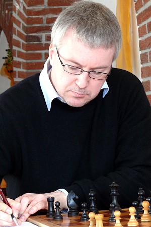 Trotz des Streiks beim Essener Nahverkehr startete die 3. Runde der Ruhrgebietsmeisterschaft der Senioren ohne Verzögerung pünktlich um 10 Uhr. Vier Spieler hatten die große Chance, ohne Punktverlust die 2. Woche des Turniers zu beginnen. Als erste wurde die Partie Dahlhaus gegen Hagermann entschieden: Hermann Hagermann (vgl. Bild) mit den schwarzen Steinen wählte in der spanischen Partie die seltene g6-Variante, um einen schnellen Angriff beginnend mit f7-f5 vorzutragen. Ein Rechenfehler bei einer Abtauschkette und ein verheerendes Damenschach auf b6 zwangen Friedhelm Dahlhaus, der mit den weißen Steinen spielte, nach 19 Zügen zu Aufgabe.