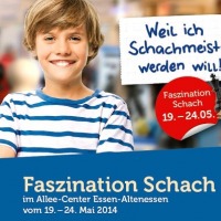 Vom 19.-24.5.2014 wird die zweite Essener Grundschulschachwoche die "Faszination Schach" präsentieren! Nach dem großen Erfolg 2012 im Limbecker Platz sind wir dieses Jahr im Essener Norden im Allee-Center Essen-Altenessen zu Gast. Sechs bunte Tage mit täglich 10 Stunden Schachprogramm vom Feinsten:
