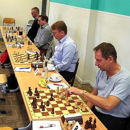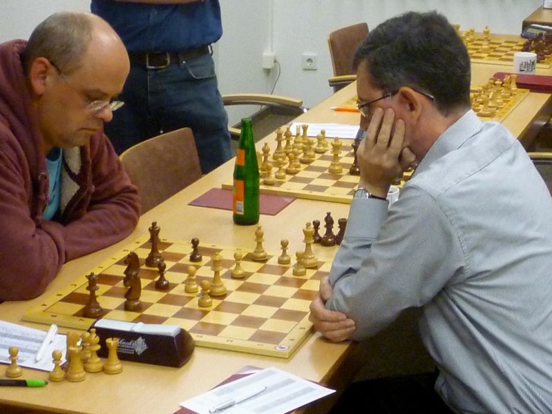 Angesichts des ELO-Übergewichts an allen Brettern hätte unsere Zweitvertretung gegen Königsspringer Herford zu einem klaren Sieg kommen müssen. Aber wie in vielen Kämpfen der letzten Jahre taten wir uns auch gegen diesen "leichten" Gegner sehr schwer. Martin Villwock sah nach 10 Zügen mit Mehrbauer und haushoher Stellung wie der sichere Sieger aus, hatte im Mittelspiel aber plötzlich eine Figur zu wenig - 0:1. Optische Vorteile bei Martin Valkyser, Marcus Bee und Bernd Rosen reichten nicht zum Spiel auf Sieg - 1,5:2,5. Rainer Kaeding stellte einen Bauern ein, gewann aber trotzdem: 2,5:2,5. Christian Scholz aus bedrängter und Sarah Hoolt aus überlegener Stellung steuerten ebenfalls Remisen bei - 3,5:3,5. Den Siegpunkt besorgte Volker Gassmann nach unklarem Eröffnungsverlauf. Seine Partie kommentiert er selbst, Bruno Müller-Clostermann hat Fotos beigesteuert: