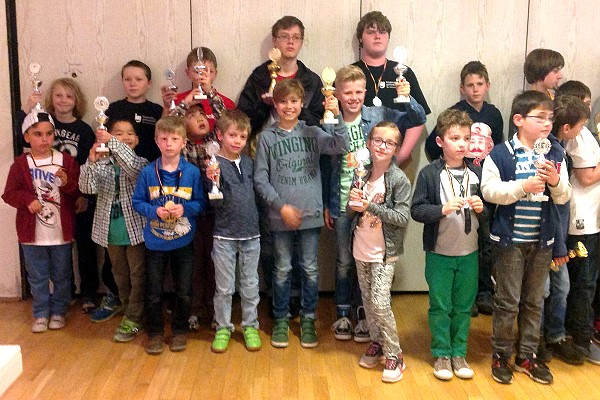 Ihre ansteigende Form bestätigten unsere beiden Nachwuchsspieler Noel Gallas und Luca Zamhöfer beim Jugendopen in Gelsenkirchen: Bei dem Turnier, das vom SC Hassel Hassel Königsspringer mit viel Liebe zum Detail sehr gut organisiert war, musste sich Noel nur dem späteren Sieger Jens Kyas (SW Oberhausen) geschlagen geben: "Mist - als ich Matt war, hatte er nur noch drei Sekunden auf der Uhr!" kommentierte Noel den kanppen Ausgang dieser Partie. Mit 5 Punkten aus 7 Partien belegte er im Gesamtturnier Platz 3 und war bester Spieler der Altersklasse U12. Luca kam am Ende auf Platz 11, was den 4. Rang in der U10 bedeutete. Schaut man auf die Wertungszahlen der Konkurrenz, muss man von einem schon sensationellen Erfolg sprechen.