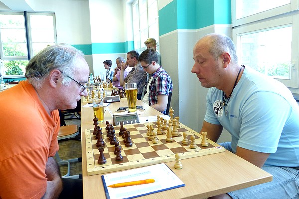 Nur mit 7 Spielern startete SFK 5. Die Urlaubszeit und eine akute Sommergrippe dezimierten den Kader doch merklich. Trotzdem wäre es noch einmal sehr spannend geworden, wenn Anna Döpper die ins Gedränge geratene Dame von Edgar Schmitz auf richtige Weise aufs Korn genommen hätte. Auf der anderen Seite überschritt Maximilian Heldt am Spitzenbrett gegen Timo Küppers in Remisstellung die Zeit. Thomas Sikorski rechtfertigte seine Nominierung in der vierten Mannschaft mit einem klar herausgespielten Sieg gegen Michael Wolff, den Mannschaftskollegen der letzten Saison.