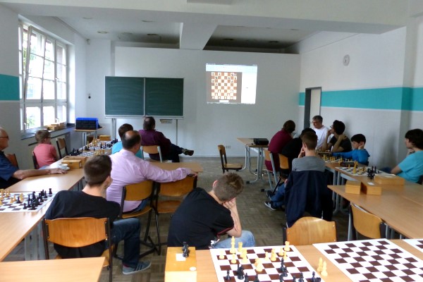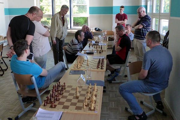 Trotz des langen Fronleichnams-Wochenendes stieß die Präsentation der Partie des Monats Mai auf reges Interesse: Zahlreiche Vereinsmitglieder ließen noch einmal den Sieg von Dr. Thomas Wessendorf im letzten Spiel der NRW-Klasse Revue passieren: Mit seinem Sieg nach 134 Zügen hielt er SFK II wie berichtet in der NRW-Klasse. Als Zugabe gab es noch die mutigste Partie: Jan Dette opferte bei der ODJM in Willingen zwei Türme in einer Partie drei Mal! Wie das geht? Nun - hier sind die beiden Partien zum Nachspielen: