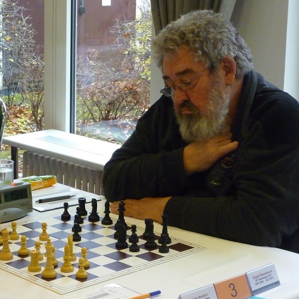 Erich stand nach einem gegnerischen "klassischen" Eröffnungsfehler im Damengambit schon nach 10 Zügen auf Gewinn und an den Brettern 5-8 waren wir sehr gut aus den Startblöcken gekommen: Bruno mit zumindest optisch schönem Positionsvorteil gegen einen "Grünfeld-Slaven"; Holger in einem Kasparov-Gambit mit starker Angriffsstellung gegen den weißen König; Jan mit positionell überlegenem Leningrader Angriff und resultierendem Bauerngewinn; Jürgen [Riesenbeck] ebenfalls mit einem Mehrbauern und positionellem Übergewicht. Ich rechnete mir gedanklich schon einen 5:3-Sieg aus! Leider kam es dann doch etwas anders.