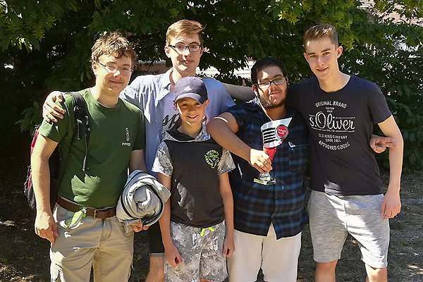 Das Bild rechts zeigt das SFK-Team aus dem Jahr 2016 bei der Schlussfeier. Über einen guten 7. Platz freuten sich Jürgen Armbrüster, Helmut Hassenrück, Willy Rosen, Erich Krüger und dahinter Bruno Müller-Clostermann mit dem Katernberger Schal.