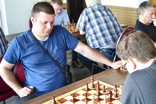 "Ich habe nach meiner Niederlage gegen Solingen noch etwas gut zu machen!" - mit dieser Ansage meldete sich Thomas Wessendorf für das Finalwochenende einsatzbereit. Am Samstagmorgen bei strahlendem Sommerwetter klang noch ein wenig Bedauern durch ("und ich habe auch noch für beide Kämpfe zugesagt!"). Glück für uns, dass Thomas keinen Rückzieher machte, denn mit zwei Siegen war er unser erfolgreichste Spieler des Wochenendes. Den größten Anteil am Erfolg hatte aber sicher Bosko Tomic, der in allen sechs Kämpfen zum Einsatz kam, am Spitzenbrett ungeschlagen blieb und insgesamt 4 Punkte holte. Diesmal steuerte er zwei Remisen bei. Für den fehlenden Punkt sorgte am Samstag gegen Brackel Ihr Berichterstatter, der allerdings davon profitierte, dass der Dortmunder Trainerkollege Christian Goldschmidt in aussichtsreicher Position die Nerven verlor und dann sehenswert ausgekontert wurde. Da war die Niederlage von Timo Küppers im Jugendduell gegen Simon Knudsen bedeutungslos.