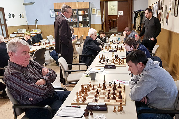 Spieltag 6 brachte die erste Niederlage für unsere 7. Mannschaft und zugleich das Ende aller Aufstiegsträume. Bie auf Bugrahan Corak, der durch Samuel Becker ersetzt wurde, traten wir komplett an. Zuerst steuerten unsere beiden jüngsten Spieler, Sam Becker an Brett 8 und Lukas Rasch an Brett 3 zwei schnelle Remisen zum Zwischenstand von 1:1 bei. Kurz darauf folgte ein Sieg von Friedel Dicks an Brett 6. Friedel hatte in einer überlegen geführten Königsindischen Partie zuerst Material und dann den ganzen Punkt zum 2 - 1 gewonnen. Bei den weiteren laufenden Partien sah es teilweise nicht mehr so gut für uns aus. Markus Kontny an Brett 2 waren zwischenzeitlich 2 Bauern abhanden gekommen und er kämpfte ums Überleben. Genauso verhielt es sich mit unserem 4. Brett Achim Kühn. Als ich das erste mal auf sein Brett sah, hatte er das Läuferpaar gegen 2 Springer seines Gegners. Bei einem späteren Blick aufs Brett fehlte Achim ein ganzer Turm. Günther Klas an Brett 7 stand leicht besser, hatte aber nichts konkretes und auch an Brett 5 bei Marco Werth stand es in etwa gleich.