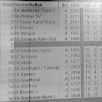 Am 25.03. spielten wir die letzte Runde zu Hause in der Zeche Helene gegen die dritte Jugendmannschaft von Mülheim-Nord. Da ich als Mannschaftsführer an diesem Tag verhindert war, wurde ich durch Günter Struck, den Mannschaftsführer von SFK 8 bestens vertreten. Der Kampf verlief recht einseitig zu unseren Gunsten und am Ende stand ein Ergebnis von 5-1 und die Verteidigung der Tabellenführung. Zu erwähnen bleibt noch, dass Jonas Swierzinski seinen ersten Einsatz für unsere Jugendmannschaft bestritt und seine Partie obendrein siegreich beenden konnte