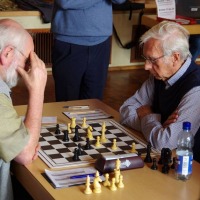 Das ist auf eine Kurzformel gebracht die Beschreibung der Spitzenpaarung beim 7. Willi-Knebel-Gedenkturnier. Zwei Senioren, die so viele Jahre auf dem Buckel haben, genau so viele Kilo auf die Waage bringen und so ein herausragendes und vor allem kämpferisches Schach spielen, findet man in Deutschland nicht so leicht ein zweites Mal. Dass sie darüber hinaus seit Jahrzehnten im selben Verein spielen, ist sicher einmalig in den Deutschen Landen. Das gibt es nur bei den Sportfreunden Katernberg aus Essen.