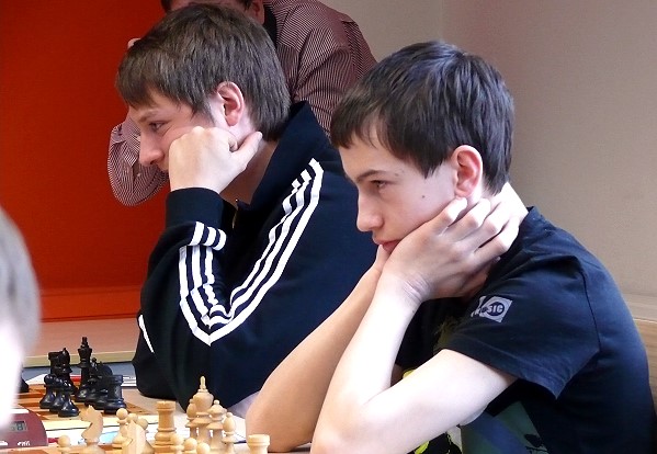 Daniel Wasem und Michael Dohmen kamen mit Problemen aus der Eröffnung, während Lukas Schimnatkowski und Tim Dette schnell in Vorteil kamen. Mit einem tollen Damenopfer stellte Daniel den Gegner vor ein undeckbares Matt, allerdings konnte dieser mit seir Dame ein Dauerschach geben. Anstatt sich mit dem halben Punkt zu begnügen jagte Daniel weiter dem ganzen Punkt nach, musste sich aber schnell geschlagen geben. "Da habe ich mich wohl verrechnet!" räumte er nach der Partie zerknirscht ein.