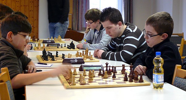 Erstmals nahmen drei unserer Jugendlichen an der Einzelblitzmeisterschaft des SVR teil und konnten sich sofort für die NRW Jugend- Einzelblitzmeisterschaft qualifizieren, die im Mai ausgetragen wird. Leider war die Anzahl der Teilnehmer gegenüber dem Vorjahr rückläufig. So konnte Turnierleiter Ulrich Wolf den Wettbewerb als Rundenturnier durchführen. Dabei spielten die 8 anwesenden U14 Teilnehmer - darunter Tim Dette und Arman Marvani - zusammen mit den 3 U16 Teilnehmern in einer Gruppe und die 8 U20 Teilnehmer doppelrundig in der anderen Gruppe.