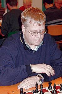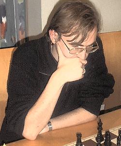 IM Matthias ThesingSFK musste in Mülheim auf IM Martin Senff und Erwin L'Ami verzichten, die aber durch FM Falko Meyer und FM Dr. Thomas Wessendorf gut vertreten wurden. Den schnellen Remispartien von Andrei Volokitin (Der 16-jährige Ukrainer traf am 2. Brett sinnigerweise auf einen GM-Kollegen aus Uzbekistan), Falko Meyer und Christian Scholz folgte ein grandios heraus gespielter Sieg von IM Matthias Thesing (Foto), der sich bei seinem Debut für SFK in glänzender Spiellaune präsentierte. Dr. Thomas Wessendorf rettete in einem verdächtig stehenden Endspiel das Remis, als er seine letzte Figur für einen gefährlichen Bauern opferte, um anschließend mit dem König gegen den "falschen" Läufer ins rettende Eck zu stürmen.