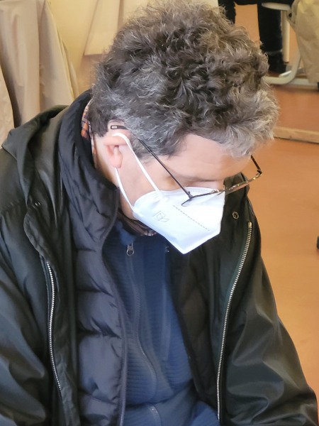 Heinz-Jürgen spielte im Franzosen die Winawer Variante. Es entstanden Doppelbauern auf f7, f6 und auf c2, c3. Im weiteren Verlauf tauschte er wohlüberlegt einige Figuren ab. Zum Schluss hatte Heinz-Jürgen trotz eines zwischenzeitlichem Minusbauern eine gute Stellung erreicht, denn seine Figuren waren im Endspiel aktiver. Jedoch gingen ihm in den letzten Zügen in einem schwierigen Endspiel die Ideen sowie die Zeit aus und deshalb nahm er das gegnerische Remisangebot zum 5:3 Endstand an.