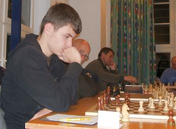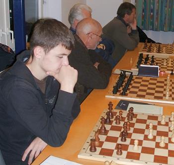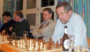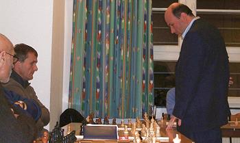 Im Rahmen unseres Vereinsfestes zum 75jährigen Jubiläum trat Vladimir Chuchelov zu einem Simultanwettkampf an 20 Brettern an. Unter den Gegnern waren Spieler aller SFK-Mannschaften vertreten, am Ende der harmonischen Veranstaltung konnten sich drei Schachfreunde über einen Teilerfolg freuen: Werner Nautsch, Ulrich Geilmann und Markus Kontny schaften immerhin ein Remis. Auch seinem Sohn Alexander, der von der charmanten Mutter beraten wurde, schenkte Vladimir keinen (halben) Punkt.