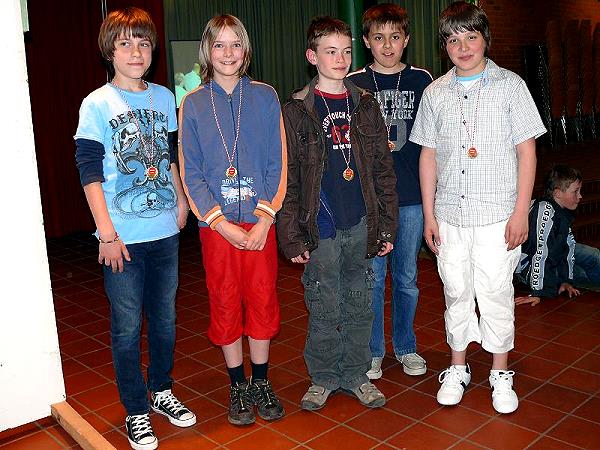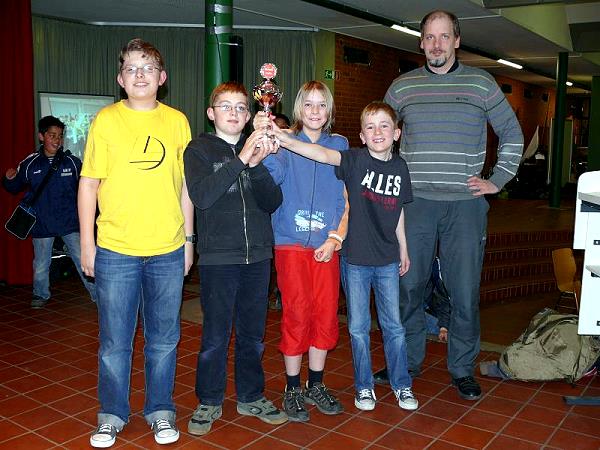 Bei der NRW-Schulschachmeisterschaft der WK IV (Jahrgänge 1997 und jünger), die am 23.04.2010 in Dortmund ausgetragen wurde, kam das Leibniz-Gymnasium auf einen hervorragenden 3. Platz. Maßgeblich beteiligt an diesem Erfolg waren die SFK-Jugendlichen Tim Dette, Lukas Schimnatkowski und Anna Bérénice Döpper, die an den ersten drei Brettern spielten. Vierter Spieler war der erst 10jährige Sören Tonnemacher, der am letzten Brett zwar manche Partie wegen seiner mangelnden Erfahrung verlor, aber fast immer dann einen Punkt beisteuerte, wenn einer seiner Vorderleute strauchelte.