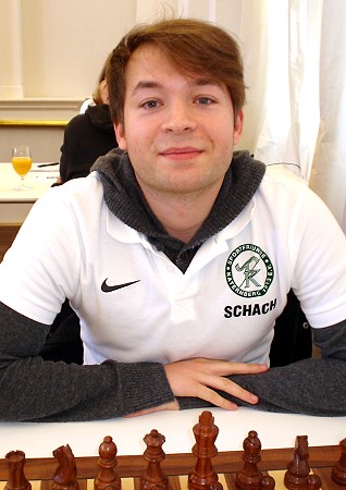 14.00 Uhr. Spielbeginn. Ohne Robert! 30 Minuten Karenz, dann würde Trier kampflos in Führung gehen. Und so kam es auch. FIDE-Schiedsrichter Daniel Fuchs waltete seines Amtes. 0:1 (kampflos). Ich war total ratlos und machte mir zudem große Sorgen. Irgendwas war da offenbar furchtbar schief gelaufen. Während ich also nun fieberhaft nach einer Lösung des Problems suchte, ging’s im Turniersaal zur Sache. Den bemerkenswertesten Eindruck hinterließ dabei vorerst Sebastians Spielanlage. Er vernachlässigte nämlich seine Entwicklung zugunsten einer h-Bauernstampede.