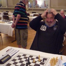 Bruno (als Fotograf leider ohne Bild) musste nach einem Bilderbuchstart mit 3-aus-3 in Runde 4 gegen den Favoriten FM Bernd Baum eine Niederlage hinnehmen, schaffte in der Folge nur noch einen Sieg und 4 Remisen (allerdings gegen durchweg DWZ- und Elo-stärkere Gegner). Unterm Strich 6/9 und dank guter Buchholzwertung Platz 9 direkt hinter Jürgen. Auch hier ist die 2000-Grenze dank einem DWZ-Zuwachs von +21 wieder überschritten. Also ein kleines Comeback und noch ein neuer/alter 2000-er!
