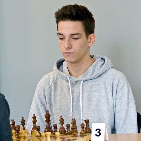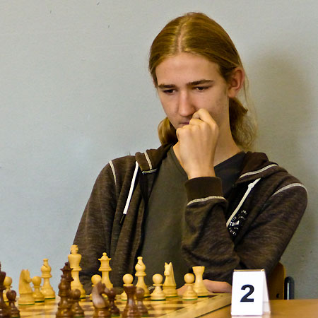 - Luca macht aus einem Sokolski einen Vorstoß-Franzosen mit vertauschten Farben + Weiß schiebt seine Bauern am Damenflügel nach vorn + Luca inszeniert einen Figurenangriff am Königsflügel, der Weiß in Oanik versetzt: Er schwächt mit f2-f4 den Königsflügel und tauscht voreilig auf c6 ab, was Schwwarz die b-Linie schenkt + wenig später erobert Luca die Qualität + kurz vor der Zeitkontrolle taucht die weiße Dame am schwarzen Königsflügel auf, was Luca in Sorge versetzt + mannschaftsdienlich akzeptiert er ein Remisangebot in vermutlicher Gewinnstellung + 3,5:1,5