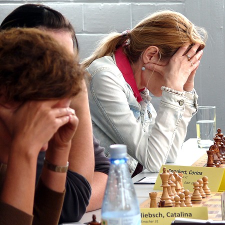 Ungeachtet der sportlichen Rivalität, die in vielen spannenden Derbys ihren Niederschlag fand, haben wir zum SV Wattenscheid immer gute nachbarschaftliche Beziehungen gepflegt. Nun gibt es noch eine zusätzliche Verbindung zwischen den Vereinen: Anna Bérénice Döpper verstärkt als Gastspielerin die Wattenscheider Frauenmannschaft in der 2. Frauenbundesliga. Gleich in der ersten Runde kam sie zum Einsatz und behielt in einer spannenden Partie mit vielen taktischen Wendungen dank eines starken Freibauern die Oberhand - ein wichtiger Punkt zum 4:2 - Sieg der Wattenscheiderinnen gegen den Aufsteiger Horst Emscher. Hier einige Schnappschüsse von diesem Kampf und der parallelen Begegnung Heiden - Mülheim.
