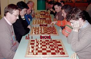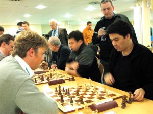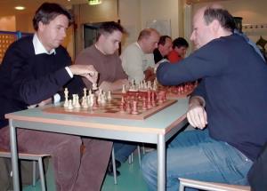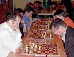 Nach dem sportlichen Misserfolg des ersten Bundesligawochenendes mussten wir uns damit trösten, zusammen mit der SG Aljechin Solingen erneut ein Blitzturnier der Extraklasse ausrichten zu dürfen: Zur zweiten Auflage des Bundesligablitz erschienen insgesamt 86 Teilnehmer, darunter 14 Großmeister und zahlreiche weitere Titelträger. In den 15 Runden dominierte der für Wattenscheid spielende russische Großmeister Alexander Rustemov das Feld, er stand schon zwei Runden vor Schluss als Sieger fest. Hinter dem für Mülheim startenden Bochumer GM Daniel Fridman kam SFK-Neuzugang GM Evgeny Postny als bester Katernberger auf den dritten Platz. Karlheinz Bachmann durfte sich über den Preis für den besten Senior des Turniers freuen.