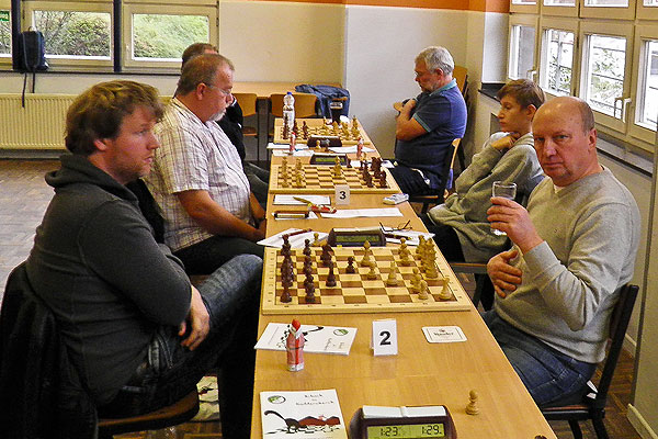 Nachdem wir in den ersten beiden Runden jeweils 4-4 gespielt hatten, wollten wir in der 3.Runde der Kreisliga endlich auch mal gewinnen. Die Voraussetzungen dafür waren gut: Bereits drei Wochen vor dem Termin lagen die Zusagen aller Stammspieler vor. Zum ersten Mal konnten wir also in unserer stärksten Aufstellung antreten. Als Gäste empfingen wir die 4. Mannschaft von Germania Kupferdreh. Die Kupferdreher waren in etwa gleichstark, an den ersten Brettern leichte DWZ-Vorteile, an den unteren Brettern leichte DWZ-Nachteile, so dass ein Kampf auf Augenhöhe zu erwarten war.