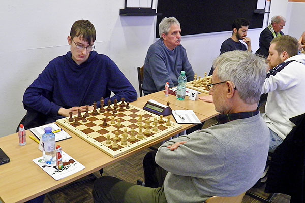 Leider kamen unserem 2. Brett Markus Kontny einige Bauern abhanden, so dass er verlor: Nur noch 2-1. Es folgten zwei Remispartien unserer Jugendspieler Lukas Rasch (Brett 3) und Marco Werth (Brett 5) zum Zwischenstand von 3-2. Die spätere Analyse dieser Partien mit Lukas Schimnatkowski zeigte, dass Beide wohl verfrüht remisiert hatten. Lukas hatte mehrere gute Fortsetzungen und Marcos Stellung war sogar forciert gewonnen.