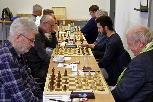 Nach nicht einmal einer ganzen Stunde Spielzeit meldete unser Brett 4 Achim Kühn einen Sieg. Ob Achim seinen Gegner jetzt überspielt hat oder ob dieser patzte, kann ich hier nicht sagen. Hauptsache gewonnen, 1-0. Danach folgte ein weiterer schneller Sieg unseres 8. Brettes Günther Klas. Dieser spielte ein Königsgambit, das seinen Gegner vor große Probleme stellte. Günther sagte mir nach der Partie, dass er diese Stellung bereits eine halbe Million mal auf dem Brett hatte. Sein Gegner anscheinend nicht, somit 2-0 nach noch nicht einmal anderthalb Stunden. So konnte es weitergehen.