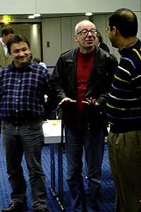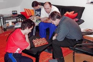 Am Samstag kam es dann zum heiß ersehnten Duell mit dem Meisterschaftsfavoriten Baden Baden, der zur Freude der Gastgeber nicht nur seine Cracks Anand, Swidler und Shirov aufbot, sondern mit Dr. Robert Hübner auch einen Spieler, dem die Katernberger seit vielen Jahren freundschaftlich verbunden sind. Die Bekanntschaft geht zurück auf Begegnungen in den 60er Jahren, als ein blutjunger Robert Hübner und ein gertenschlanker (!) Raymond Keene mehrmals zu Gast in Katernberg waren.