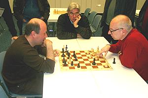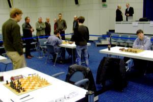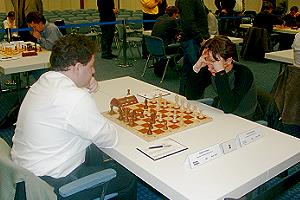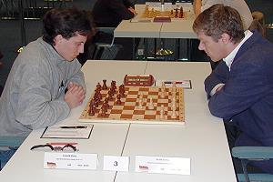 Dieser Rückstand war nicht mehr aufzuholen. Igor Glek kam zwar nach hartnäckiger Verteidigung in unbequemer Stellung zu einem Remis gegen Rustem Dautov, aus den Partien an den letzten beiden Brettern sprang jedoch nur noch ein Sieg für SFK heraus: Erwin l'Ami behielt in einer Kampfpartie gegen Rainer Buhmann die Oberhand. Martin Senff, der gegen Fabian Döttling schlecht aus der Eröffnung herausgekommen war, musste sich zunächst mit einem schwachen Isolani und dann in einem Turmendspiel mit Minusbauern lange quälen, verteidigte sich jedoch erfolgreich. Sein halber Zähler war natürlich zu wenig - der Favorit hatte sich knapp, aber letztlich verdient durchgesetzt.