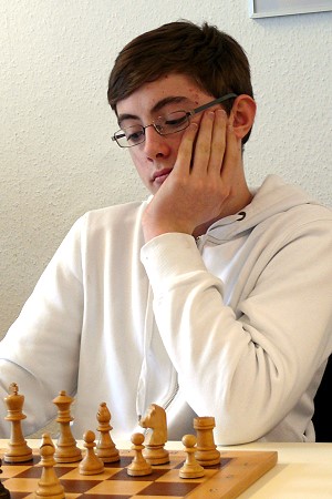 Meine Prognose, dass Lukas Schimnatkowski in der U16 durchaus ein Erfolgserlebnis zuzutrauen ist, erwies sich als begründet: Lukas hielt sich immer in der Spitzengruppe auf, unterlag nur dem neuen Meister Jan Wastian aus Dortmund und belegte am Ende mit 5 Punkten aus 7 Runden einen hervorragenden 3. Platz. Eine noch bessere Platzierung vergab er in der Partie mit dem späteren Zweiten Florian Stricker (Dortmund), als er in Gewinnstellung wegen der knappen Bedenkzeit ein Remisangebot akzeptierte.