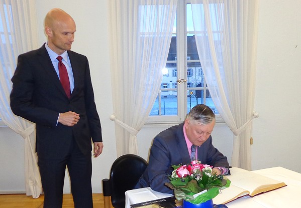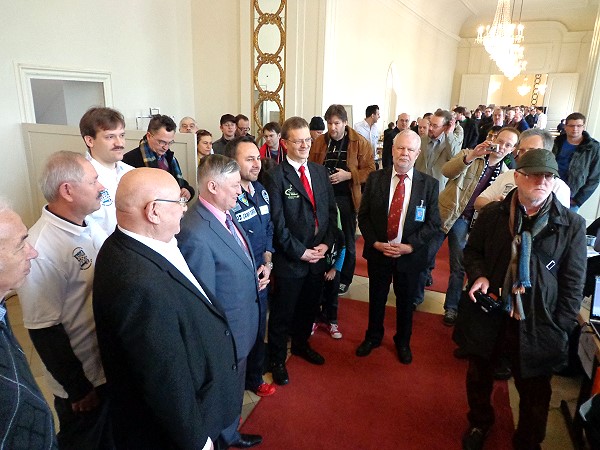 Das galt diesmal nicht so sehr für die letzten Mannschaftskämpfe, die aus Katernberger Sicht nur noch eine Standortbestimmung bedeuteten, sondern besonders für das wundervolle Ambiente und das tolle Rahmenprogramm der zentralen Abschlussrunde rund um das Weltkulturerbe Schloß Schwetzigen mit Ausstellungen, Lehrgängen und Simultanveranstaltungen. Zu dem Rahmen gehörte u. a. ein Empfang der Stadt Schwetzigen im schlossnahen Palais Hirsch, an dem ich am Donnerstagabend als einer der Vertreter der Schachbundesliga teilnahm. Eine Soiree mit getragener Musik und entsprechend feierlichen Reden. Höhepunkte waren dabei sicherlich die Grußworte des DSB-Präsidenten Herbert Bastian sowie des Exweltmeisters Anatoly Karpov.