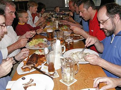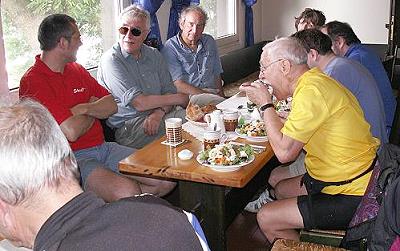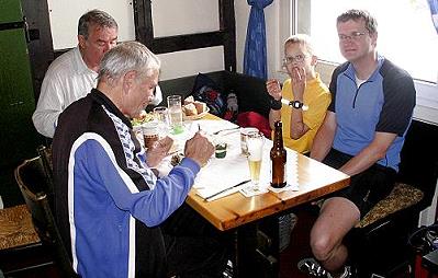 Nach 55 abwechslungsreichen Kilometern rund um den Kemnader, Hengstey- und Harkortsee ließ man den Tag bei einem Glas Bier noch einmal Revue passieren. Dr. Thomas Wessendorf ehrte den Organisator von inzwischen 12 Radtouren, Dieter Deppe, mit einem kleinen Präsent: