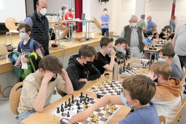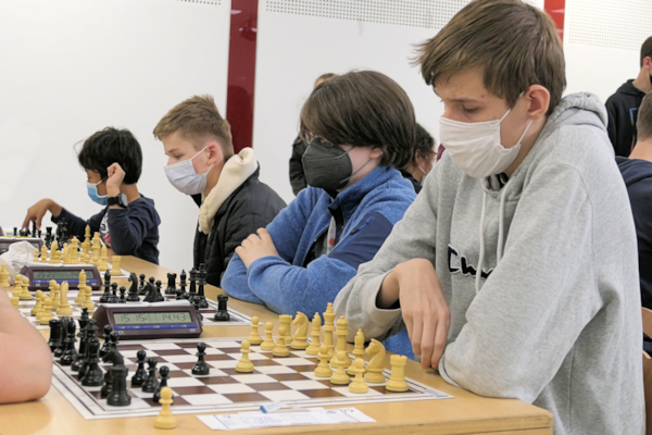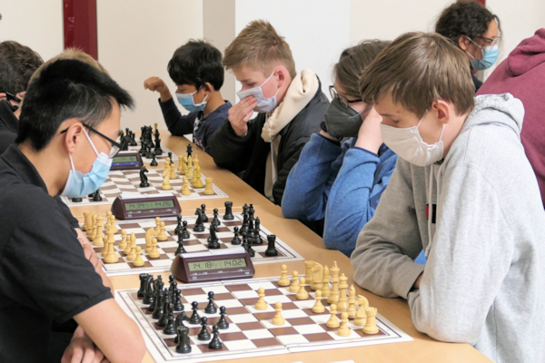 Die Geschichte des Turniers ist schnell erzählt: Schon in der 3. Runde kam es zum vorentscheidenden Duell mit Godesberg, das als einziges Team vor uns gesetzt war. Auch bei Godesberg verwaltete mit Edgard Zhuikov ein Ukrainer das Spitzenbrett. Mykola entschied dieses Duell aber klar für sich: Er erlangte die strategisch bessere Stellung und nutzte den ersten taktischen Fehler seines Gegners zum Mattangriff. Daniel ging an seinem unentwickelten Damenflügel zugrunde, Nils musste sich in einer zähen Manövrierpartie mit einem Remis begnügen. Lukas L. behielt bei knapper Zeit den besseren Überblick und gewann nach einem taktischen Fehler seiner Gegnerin eine Figur und wenig später auch die Partie.