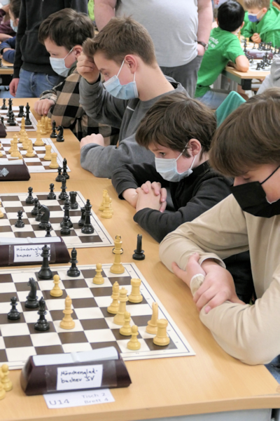 Für mich als Betreuer, der schon eine ganze Reihe dieser Quallifikationsturniere mitgemacht hat, war es eine ganz neue Erfahrung: Anstelle des üblichen Zitterns um den begehrten Platz 6, der für die Teilnahme an der NRW-Meisterschaft berechtigt, wo auch die Startplätze für die Deutsche Vereinsmeisterschaft ausgespielt werden, ging es diesmal nur um die Frage, ob es Platz 1 oder 2 wird. Denn auch ohne Mykola hatte die U14 bei der Ruhrgebietsmeisterschaft dominiert und im gesamten Turnier nur 1,5 Brettpunkte abgegeben.