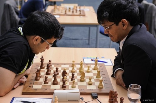 Bei Yurij lag ich ebenfalls richtig. Der Materialvorteil wollte sich einfach nicht zum Gewinn verdichten. Nach einer weiteren Stunde hatte er schließlich dann genug und willigte ebenfalls in die Punkteteilung ein (3,5-3,5). Nun lag es an Parimarjan. Die Stellung war aber inzwischen nicht einfacher geworden, zumal jetzt der gegnerische Turm einige Ziele markierte. Ich entschied daher zusammen mit ihm, kein weiteres Wagnis einzugehen. Das 4-4 ging daher letztlich in Ordnung, auch wenn wir vielleicht auf dem Weg dahin die eine oder andere Chance ausgelassen haben. Aber so ist eben Schach.