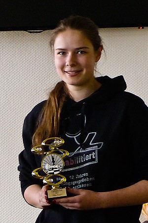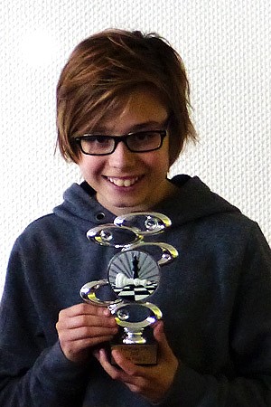 Noch deutlicher war die DWZ-Überlegenheit von Anna in der U18w, doch auch sie verlor die erste Partie nach einem groben Patzer. Im Laufe des Turniers fand sie dann zur Normalform zurück und siegte am Ende mit 6 aus 7 und einem halben Punkt Vorsprung vor der Mülheimerin Carolin Frank, die sie in der 6. Runde sicher bezwungen hatte.