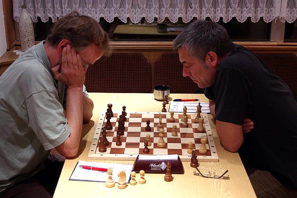 Da uns bei Gleichstand des Kampfes die Berliner Wertung ohnehin das Weiterkommen garantiert hätte, kam trotz der Null von Max keine echte Spannung auf, denn Patrick Imcke verwaltete gegen WDB-Urgestein Siegfried Kipper eine bequeme Stellung ohne jede Verlustgefahr. Schließlich eroberte er den schwachen Bauern des Gegners und verwertete den materiellen Vorteil im Endspiel.
