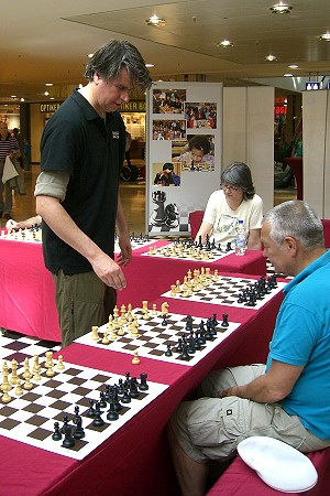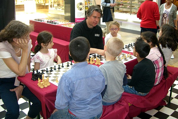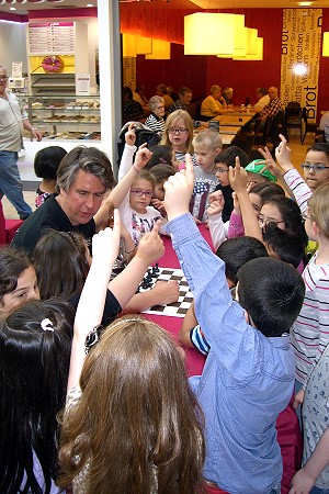 Ein voller Erfolg war die Grundschulschachwoche "Faszination Schach" im Allee-Center: Organisator Sebastian Siebrecht hatte ein buntes und abwechslungsreiches Programm auf die Beine gestellt. Zahlreiche Schulklassen konnten sich vormittags nach kurzer Einführung selbst am Schachbrett erproben, bis in den Abend hinein lockten Simultanveranstaltungen u.a. mit Alisa Frey und Großmeister Ilja Zaragatski auch die erwachsenen Schachliebhaber an. Peter Boden war mit seiner Kamera die meiste Zeit dabei, hier eine Auswahl seiner besten Schnappschüsse: