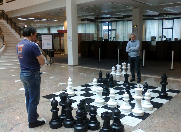 Igors Partie endete nach zähem Ringen mit dem gleichen Ergebnis. (2:4). Igor, der zurzeit mit Hochdruck an seiner Doktorarbeit bastelt, war übrigens eindeutig der am besten angezogene Spieler an diesem Tag. Richtig fesch sah er aus! Witziger Weise wollte er sich am Freitag übrigens beinahe im falschen Hotel einmieten und bestätigte damit unfreiwillig alle Vorurteile über die zerstreuten Akademiker.