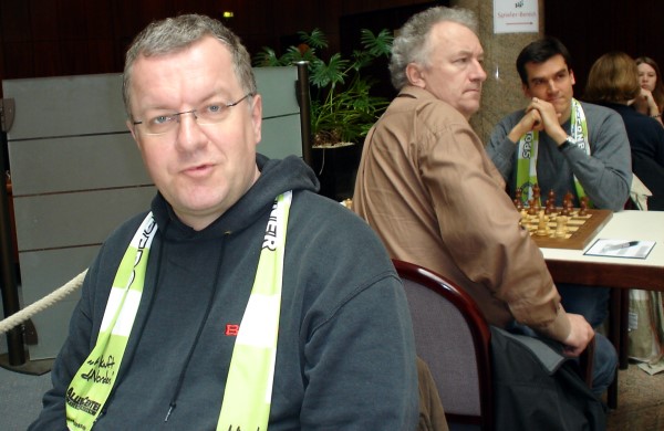 Der nächste Morgen begann mit den üblichen Wasch-, Ankleidungs-, Trink- und Essritualen, einschließlich lockeren Auftaktgesprächen im Turniersaal. Solingens Teamchef Herbert Scheidt hatte gegenüber dem Vortage jedoch leicht umgestellt. Statt GM Alexander Naumann, der aus dringenden privaten Gründen abreisen musste, kam IM Wegerle ins Spiel. Damit geriet natürlich die Vorbereitung unseres Teams zum Teil durcheinander, aber damit muss man immer leben.