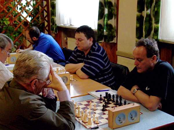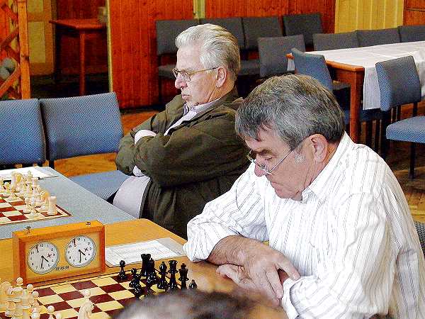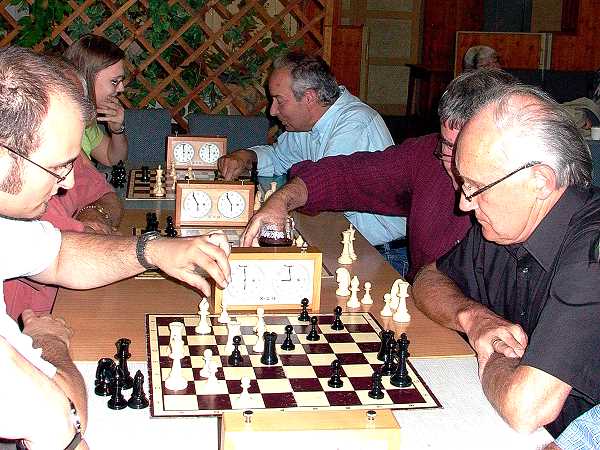 Leider ließen unsere Gastgeber im sportlichen Teil jede Gastfreundschaft vermissen: Sowohl beim abendlichen Blitzturnier als auch im Mannschaftskampf unter Turnierbedingungen hatten die Hausherren die Nase vorn: Bernd Rosen am Spitzenbrett verpatzte eine hochinteressante zweischneidige Partie in der Zeitnotphase zum Verlust, auch Werner Nautsch an Brett 3 hatte zwischenzeitlich sehr aussichtsreich gestanden und verlor. Die dritte Niederlage quittierte Hartmut Schermeier, der in Gewinnstellung die Zeit überschritt. Alle übrigen SFK-Akteure kamen nicht über ein Remis hinaus.