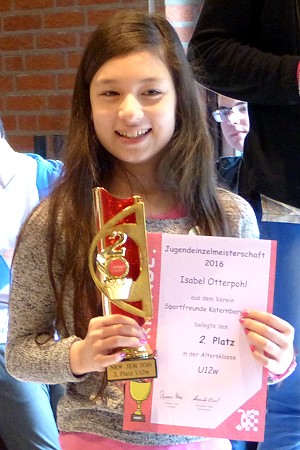 Isabel Otterpohl verlor zwar ihre Partie gegen die spätere Turniersiegerin Eva Rudolph (Düsseldorf), gewann aber alle übrigen Begegnungen und belegte so souverän den 2. Platz und ist damit ebenfalls bei der "Deutschen" dabei.