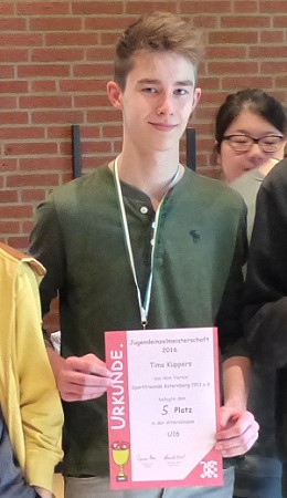 Am Ostermontag startete dann die NRW-Meisterschaft, an der unter Berücksichtigung unserer "passiven" Mitglieder rekordverdächtige sechs SpielerInnen unseres Vereins teilnahmen: Noel Gallas und Jonas Jahrke holten in der U12 "nur" 3 Punkte aus 7 Runden, agierten damit aber über der DWZ-Erwartung. Timo Küppers, der in der U16 aus der zweiten Hälfte der Setzliste heraus den 5. Platz errang, war dennoch unzufrieden, denn wie schon im Vorjahr verdarb er durch zwei gut stehende Partien durch grobe Fehler. Darunter war vor allem die Erstrundenniederlage gegen den späteren Turniersieger besonders bitter.